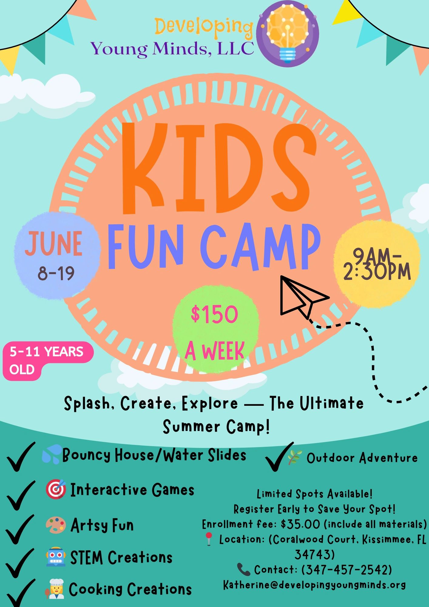 Get ready for two full weeks of Big Fun, Big Smiles, and Big Summer Memories! Our Summer Fun Camp is designed to provide children with an engaging and active environment where they can explore, create, build, and make lasting friendships.